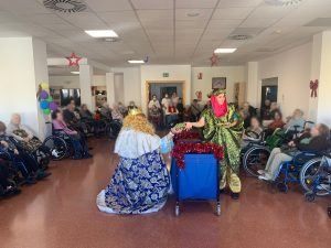 Melchor, Gaspar y Baltasar recorrieron las instalaciones saludando personalmente a los mayores, compartiendo palabras cariñosas y escuchando deseos que nunca se dejan de pedir, sin importar la edad. Muchos de nuestros usuarios vivieron el encuentro con gran entusiasmo, recordando celebraciones pasadas y reviviendo la ilusión de la infancia.